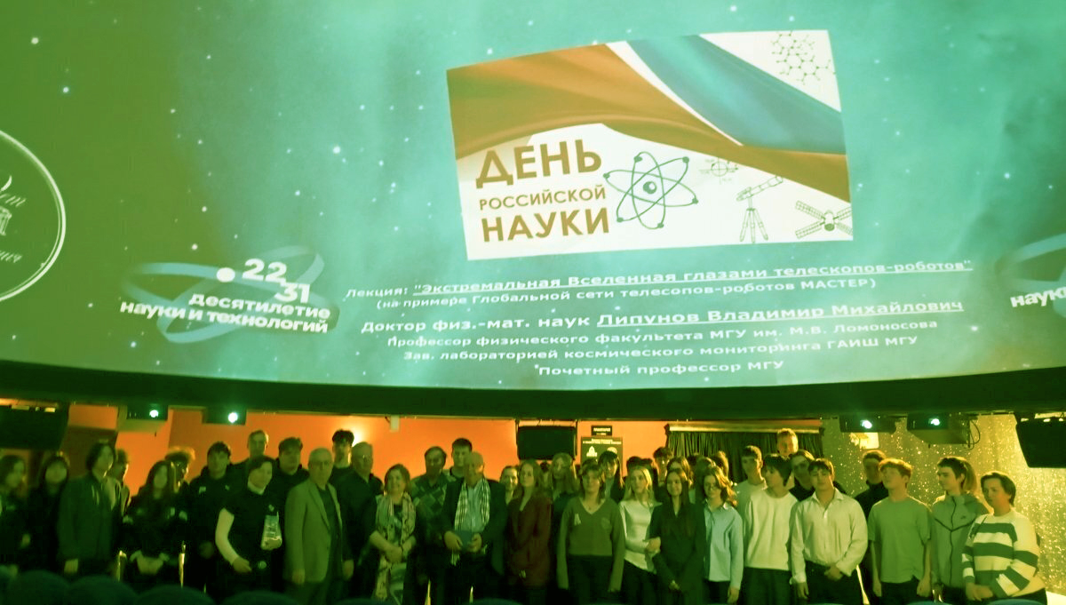 День Российской науки открыла научная лекция «Экстремальная Вселенная глазами телескопов-роботов» Владимира Липунова, доктора физико-математических наук, профессора МГУ имени М.В. Ломоносова и руководителя лаборатории космического мониторинга Государственного астрономического института им. П.К. Штернберга МГУ. Его выступление было посвящено достижениям Международной глобальной сети роботов-телескопов МАСТЕР, основателем и создателем которой он является. Отметим, что Лыткаринский завод оптического стекла принимает участие в реализации этого масштабного проекта. Во время лекции участники узнали о современных исследованиях Вселенной, наблюдениях черных дыр, нейтронных звезд и экзотических космических объектов. Если в прошлом веке мы только мечтали увидеть, как они появляются во Вселенной, то теперь мы наблюдаем рождение релятивистских объектов и явлений каждый день. И это стало возможным благодаря появлению в астрономии новых инструментов исследования — телескопов-роботов.