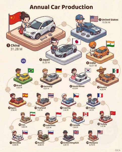 Инфографика: производство автомобилей в мире