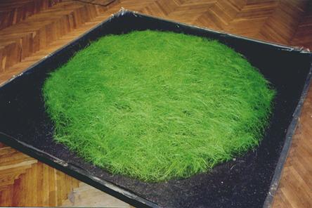 Объекты: "Песочные часы", "Куб Гераклита", "Лечение Земли", "Жизнь - ьтремС", "Смерть - ьнзиЖ", "Окно", "Колесо-спираль" и др., создавались один за другим. Когда проект выставки был готов, я показал его искусствоведу Сергею Кускову, договорились о статье. Открытие выставки "Путь естества" состоялось 24 октября 1995 года. На вернисаже я засеял белым зерном травы темную землю, высыпанную в виде круга, в центре зала, и поливал ее ежедневно из лейки. Трава взошла. Ярко-зеленый круг травы был цветовой доминантой в умбристо-коричневом колорите зала.
