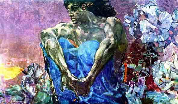 .Конец Нового времени знаменует ⌠Демон■ Врубеля. Из его окружения исчезли все вещи и меры мира √ растворились во взгляде. Геометричен сам мир каменеющего атлета √ то ли соцветия, то ли созвездия, то ли разломы кристаллов: безумные алмазы, уставившиеся на нас