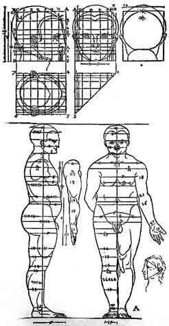 В отличие от ученых, ни один художник смутного времени не привлекался к ведьмовским процессам. Связанный с надежным ремеслом, наделенный исключительным здравомыслием, редкостной добросовестностью, искренней набожностью, а также признанием современников, гений Дюрера устоял перед всеми видами мистики √ кроме математической. Всю жизнь он был одержим одной фантастической идеей √ найти прекрасного человека в числе. Итог √ ⌠Четыре книги о пропорциях■: вершина ренессансной антропометрии и вместе с тем бесславное ее завершение.