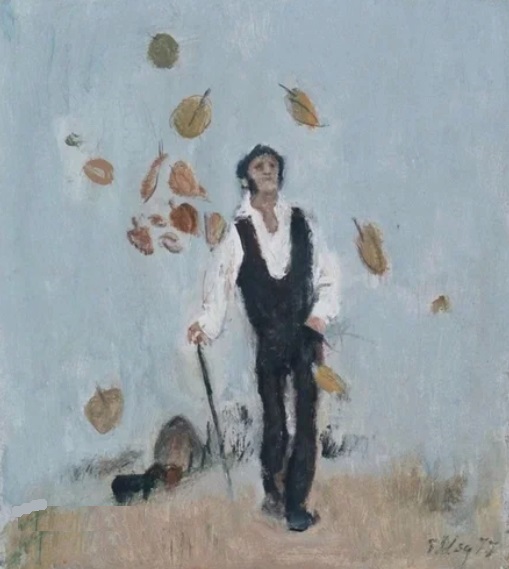 Моисеенко. Пушкин с цыганкой. 1988. В этой вещи Моисеенко посмеялся над совком не как “в лоб” не замечающим ничего подозрительного, хоть мог бы заметить (что режется лес – и воля-свобода, общий оптимизм поэзии – и изображённое настроение, реализм – и парение над землёй). Здесь изображено то, каким Пушкина себе представляют совсем далёкие от поэзии люди (какими и были большинство совков). Они слышали какой-то звон, что Пушкину предсказали смерть от белого человека, а Дантес был блондином. И всё. – Ну кто мог предсказать? – Наверно, цыганка. – И Моисеенко рисует цыганку. С характерно повязанным платком на голове и другим – на спине. И только себе тихонько знал, что то была не цыганка, а популярная в высшем свете благообразная и важно выглядящая немецкая модистка высокого роста (при росте Пушкина 167 см, что ниже среднего в 19 веке). А экспрессионизм дал ужасностью рук и потёками на стене. . Уф. Я подвергал всю мою систему эстетических ценностей серьёзному испытанию. Я внутренне готов был о какой-нибудь картине признаться, что я не могу её истолковать. Но – пронесло. 19 сентября 2023 г.