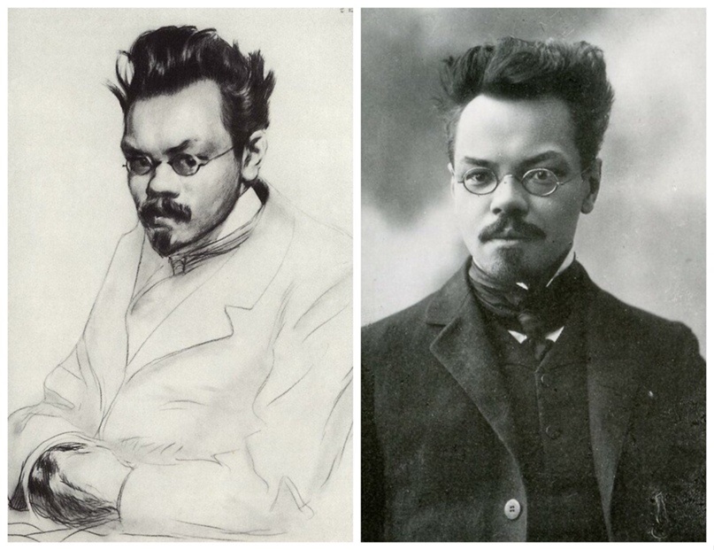 Кстати, опровергает неверную мысль понимать слово “малоиндивидуальны” относящимся к чертам лица. Уж куда как оригинален сам по себе Ремизов. И права Долинина насчёт “психологического портрета”. Ремизов же богомил. За дуализм сотворения мира – с участием Сатанаила. Это ж часть в цепи для формулы символизма (как в пословице): не согрешишь – не покаешься, не покаешься – не спасёшься. Это ж экстремизм. По фотографии это почти не видно, а Кустодиев – выявил всем на обозрение секрет души писателя.